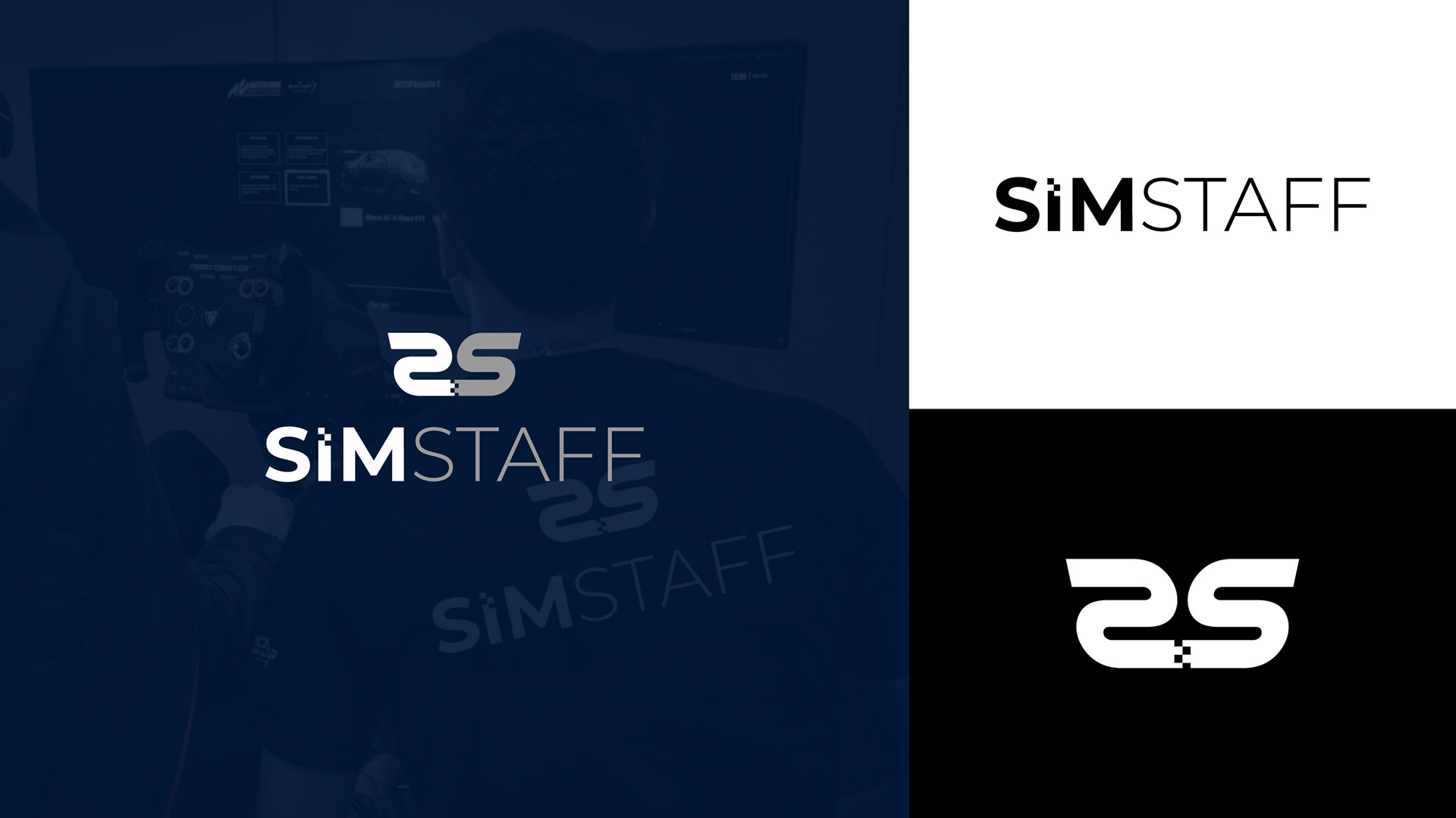 An identity created for a racing simulator event/exhibition company, featuring a logo of dual ‘S’ letters combined to form the shape of a race circuit with a chequered flag line, as well as the shape of two connected cables.